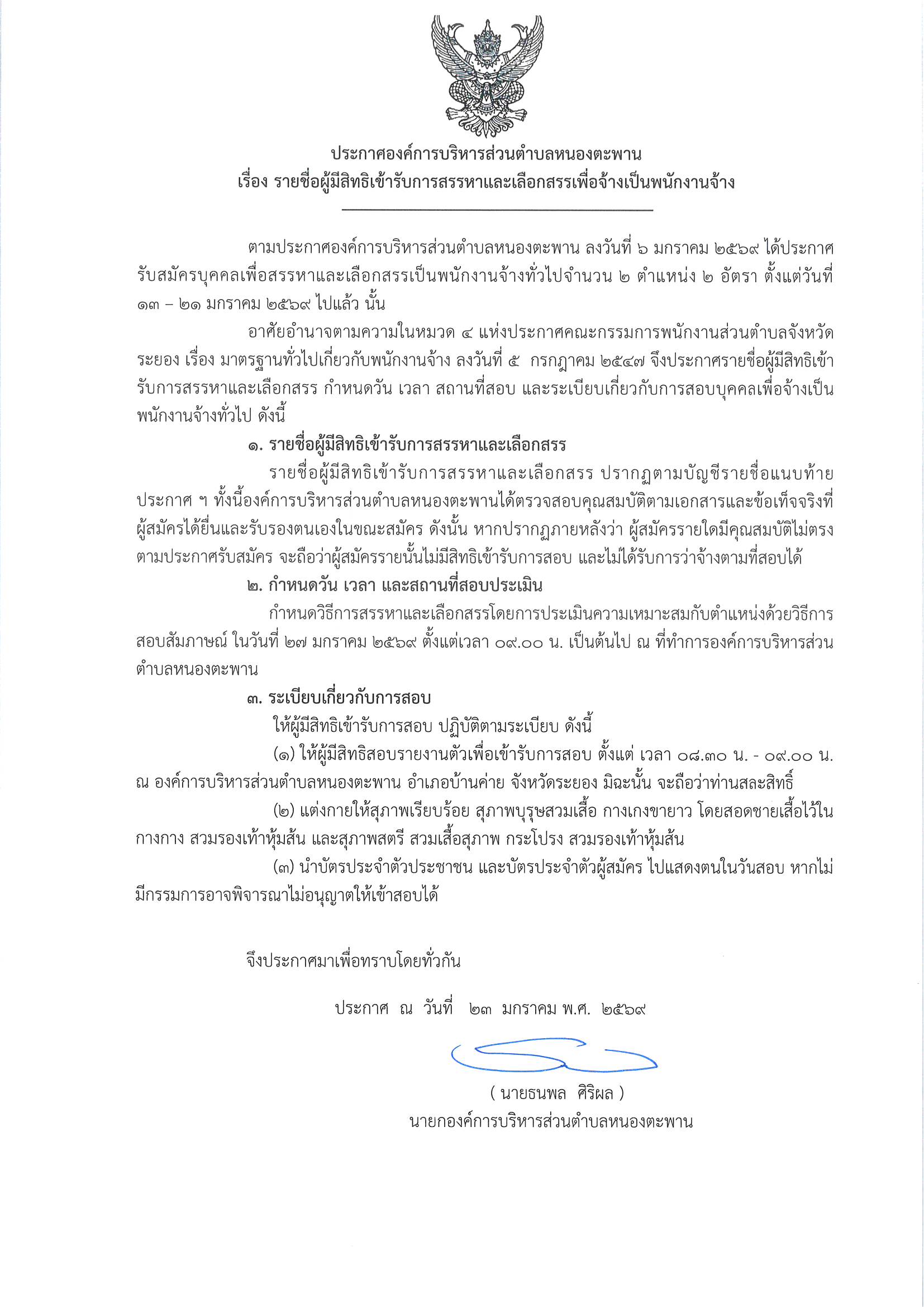 ประการรายชื่อผู้มีสิทธิ์เข้ารับการสรรหาและเลือกสรรเพื่อจ้างเป็นพนักงานจ้าง