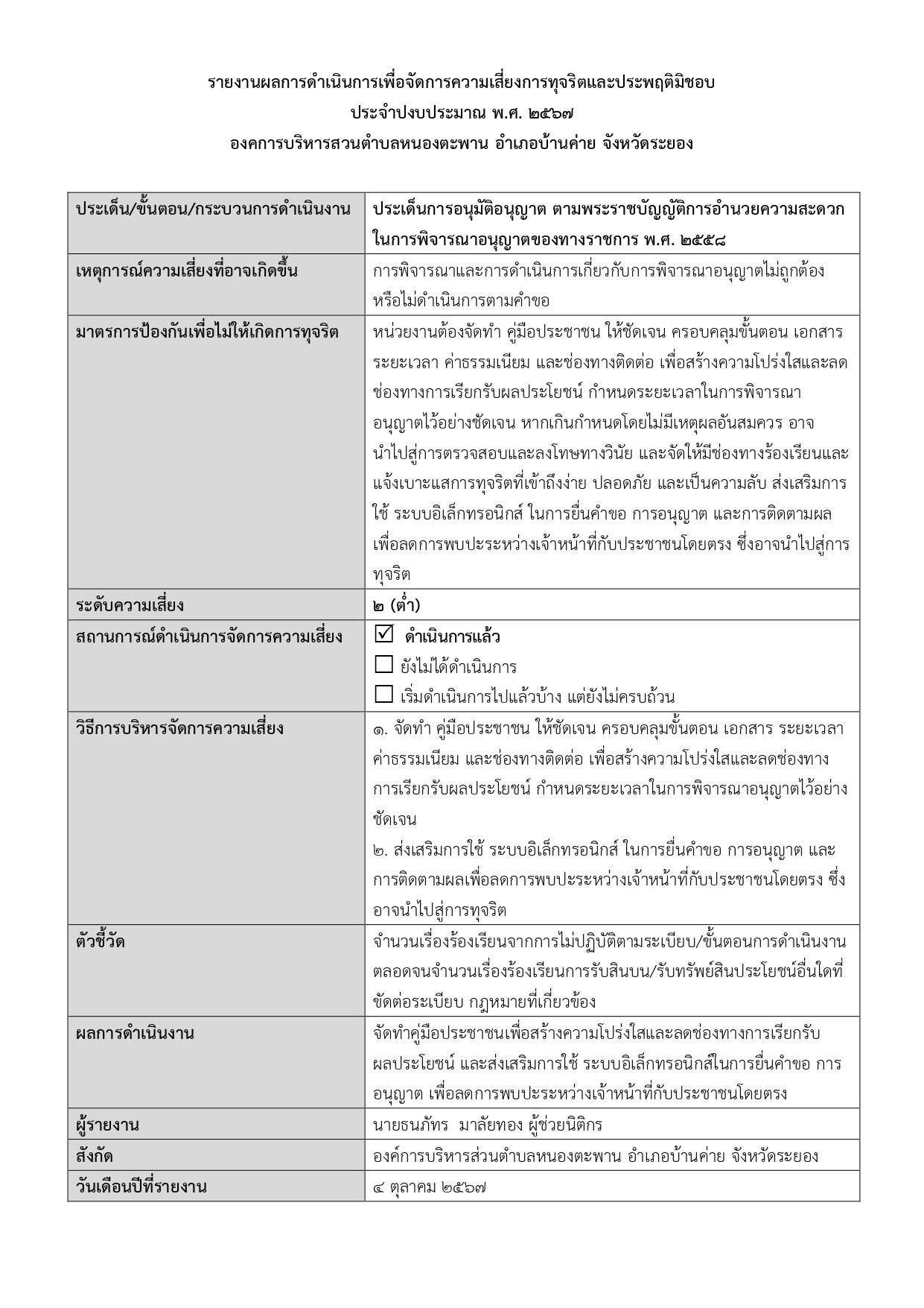 รายงานผลการประเมินความเสี่ยงการทุจริตในประเด็นที่เกี่ยวข้องกับสินบนประจำปีงบประมาณ พ.ศ. 2567 4 ต.ค. 2567 165 ครั้ง