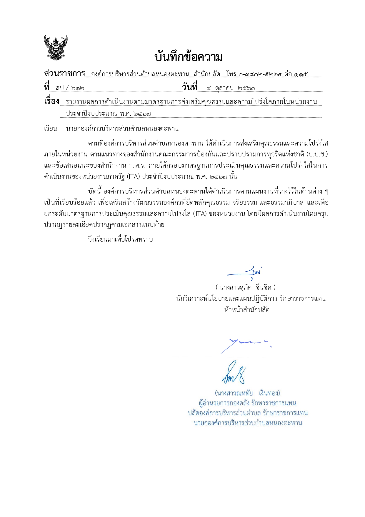 รายงานผลการดำเนินงานตามมาตรฐานการส่งเสริมคุณธรรมและความโปร่งใสภายในหน่วยงาน ประจำปีงบประมาณ พ.ศ. 2567 28 เม.ย. 2568 224 ครั้ง ◀️ หน้า / ▶️ เอกสารแนบ คลิกเพื่อดาวน์โหลด