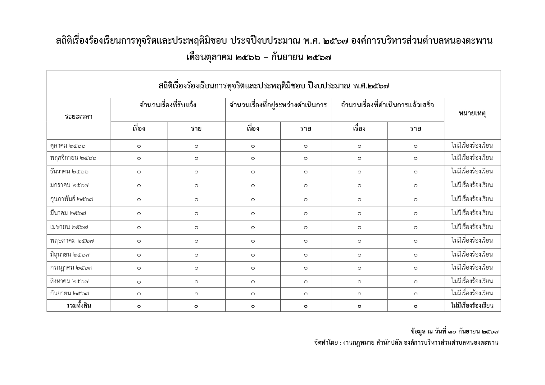 รายงานข้อมูลสถิติเรื่องร้องเรียนการทุจริตและประพฤติมิชอบ 30 ก.ย. 2567 169 ครั้ง ◀️ หน้า / ▶️ เอกสารแนบ ข้อมูลสถิติเรื่องร้องเรียนการทุจริตและประพฤติมิชอบ ประจำปีงบประมาณ พ.ศ. 2567